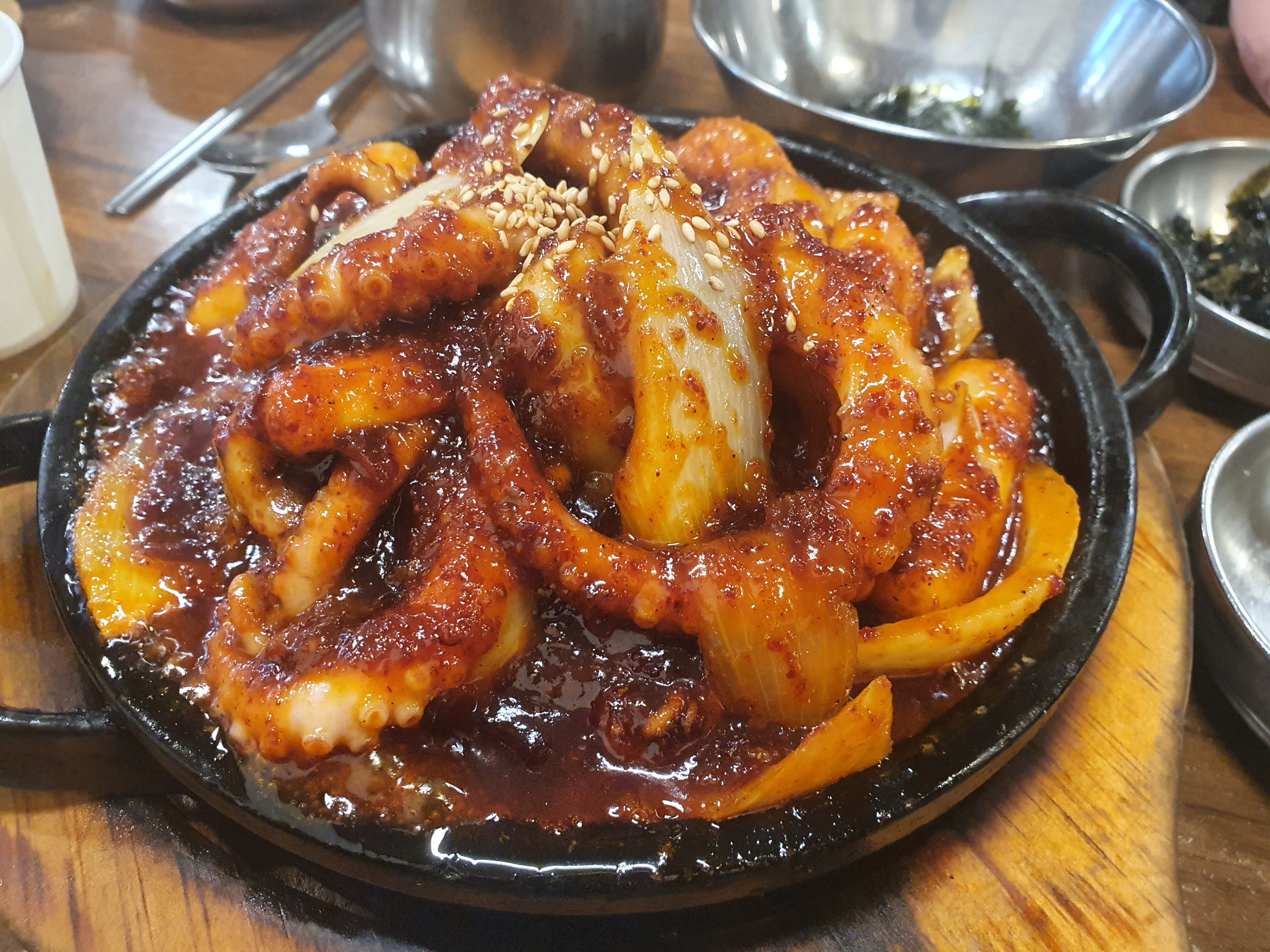 돌판에 자글자글 소리를 내며 등장한 낙지볶음