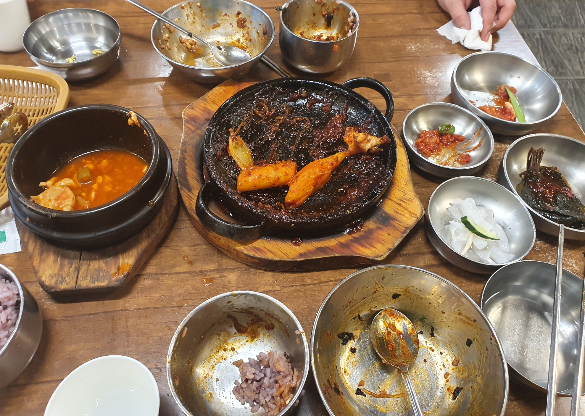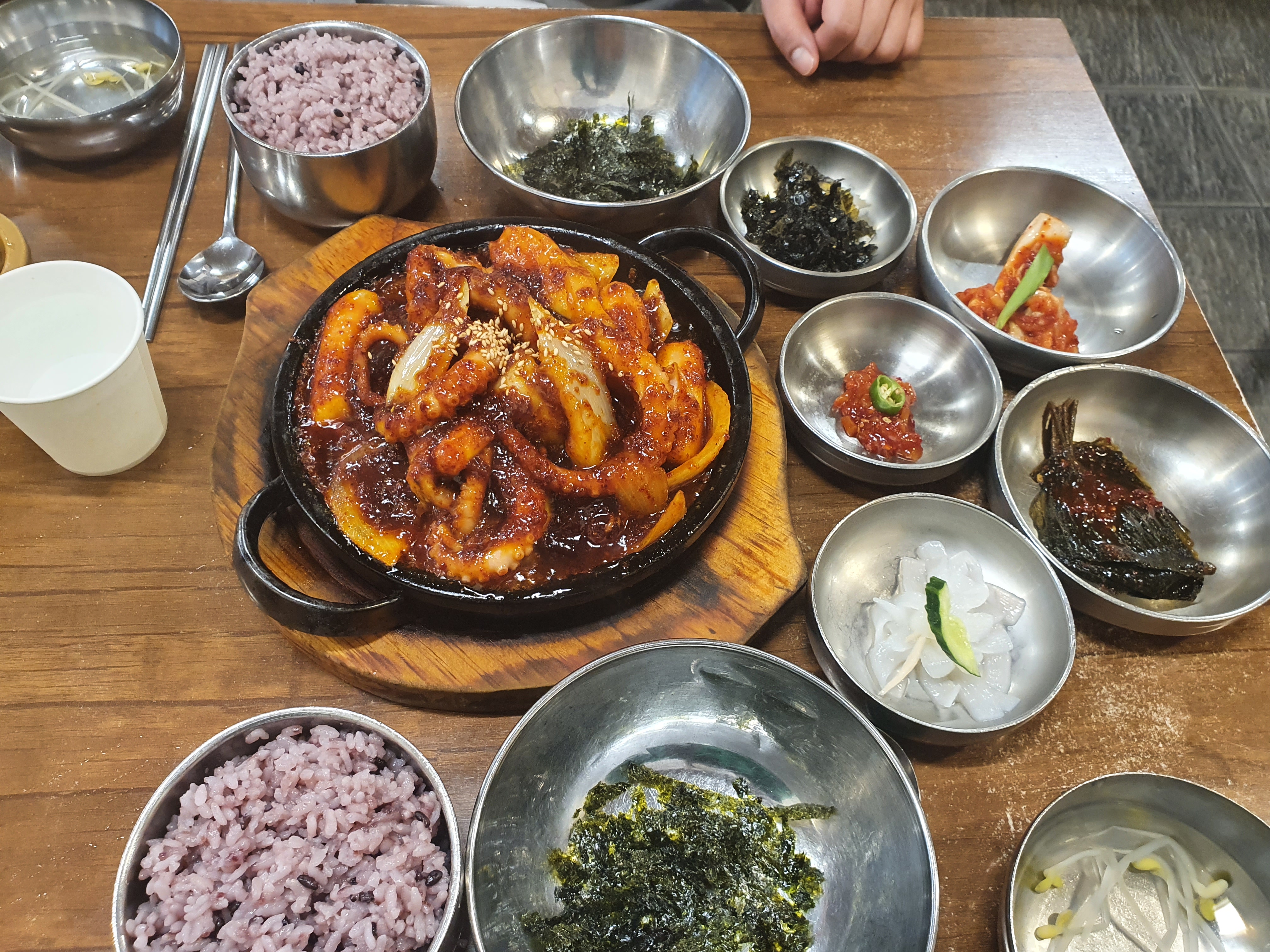 메뉴는 낙지볶음 2인분에 순두부찌개 시켰습니다