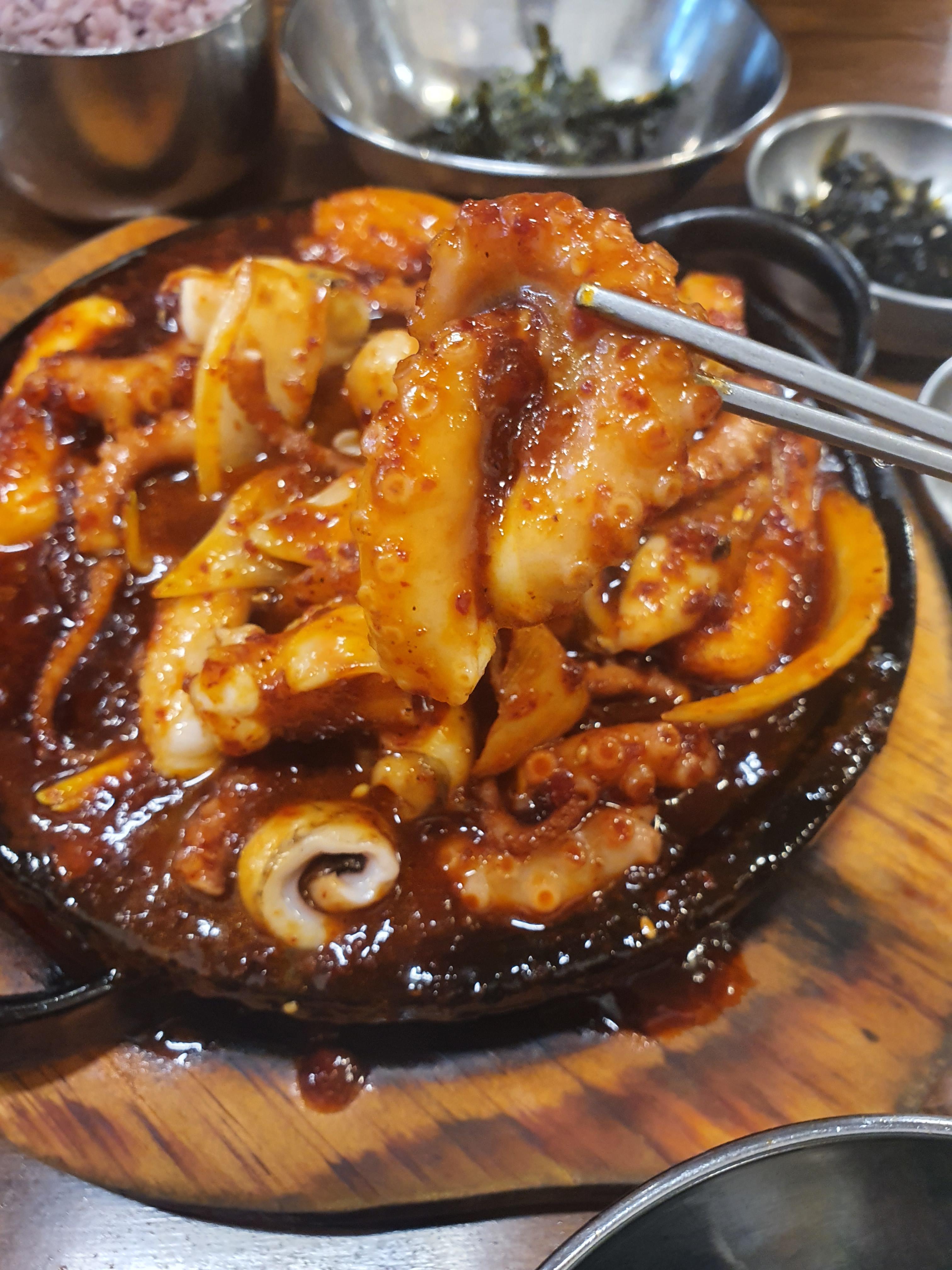 낙지 정말 통통하구.. 거친고춧가루 범벅인 양념...ㅠㅠ